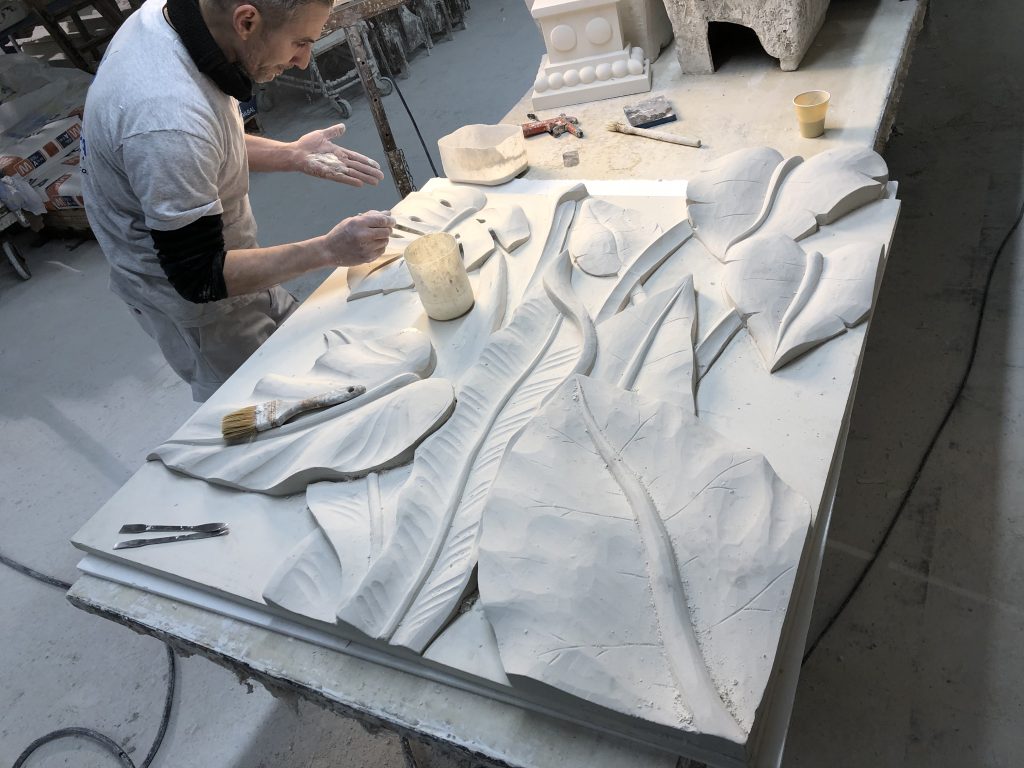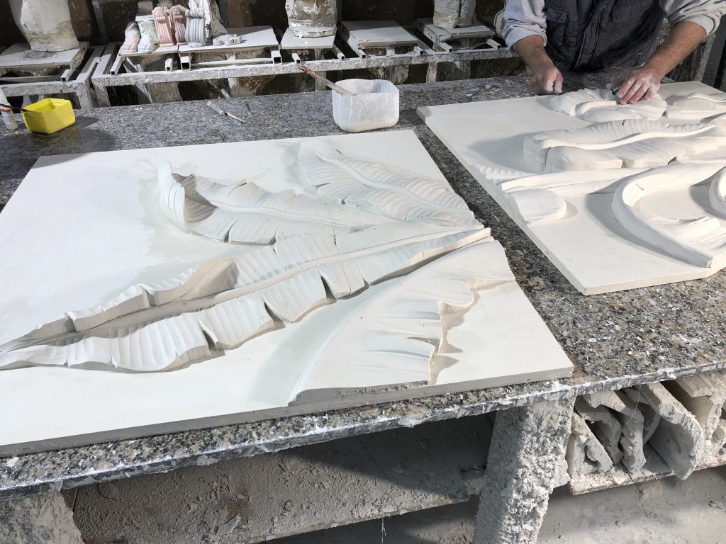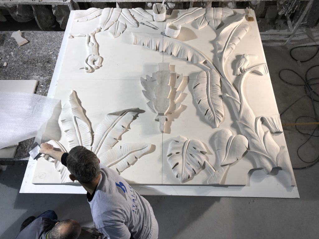 Nuestro trabajo en este relieve es un ejemplo de cómo podemos dar vida a conceptos abstractos. Cada hoja, cada detalle y cada forma fue cuidadosamente tallado para capturar la esencia de un paisaje tropical. Esta pieza demuestra nuestra capacidad para ejecutar diseños complejos, convirtiendo un concepto en una obra de arte tangible y con un acabado impecable.
