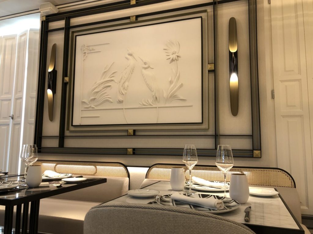 Nuestra colaboración fue fundamental para materializar esta visión, centrada en la restauración y fabricación de elementos de escayola que dotan al espacio de un carácter único y sofisticado.